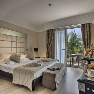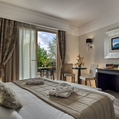 Camera ampia e spaziosa disponibile in stile classico oppure moderno, con terrazzo e la migliore vista sul parco.