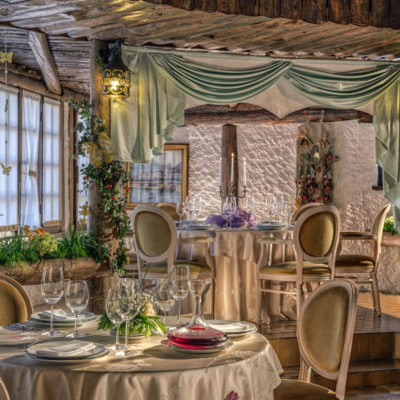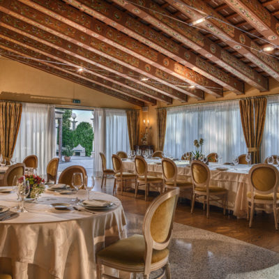 Les espaces intérieurs, vastes, élégants et lumineux, ainsi que le splendide jardin qui relie le restaurant à l’hôtel, sont le lieu idéal pour les banquets et les fêtes privées.